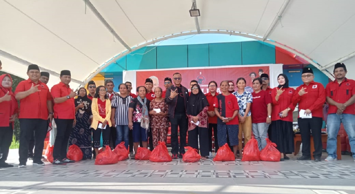 Morotai, Maluku Utara- Dewan Pimpinan Daerah (DPD) Partai Demokrasi Indonesia Perjuangan (PDI-P) Provinsi Maluku Utara menyerahkan bantuan sembako kepada 300 warga Kabupaten Pulau Morotai.