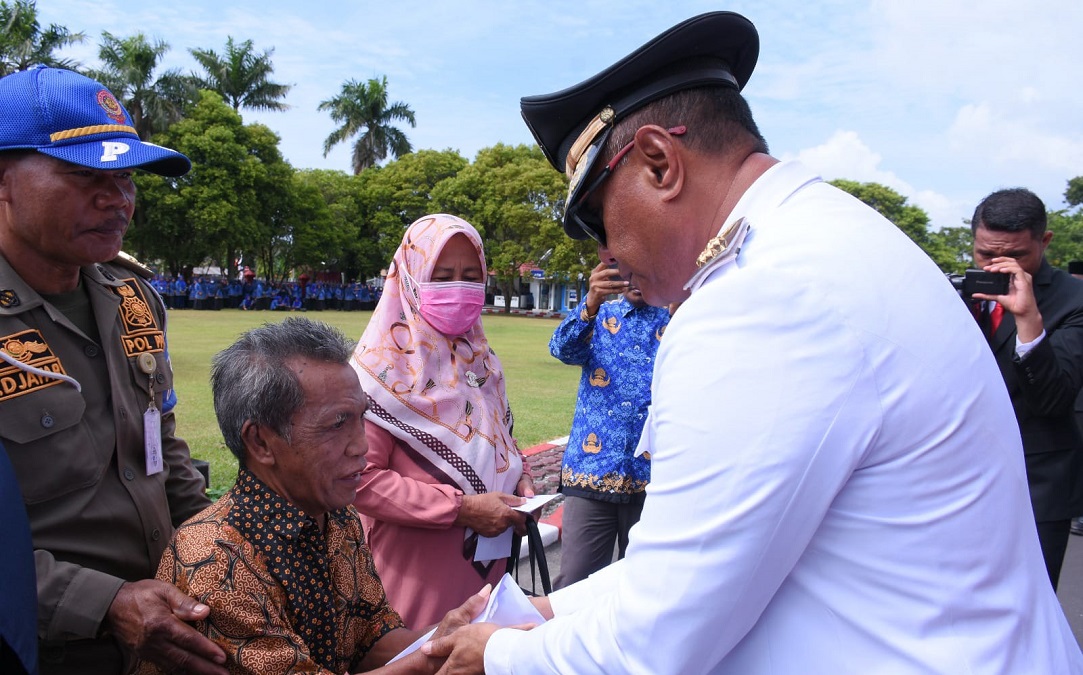 Bantuan ini diserahkan langsung oleh Walikota Capt Hi. Ali Ibrahim dan Wakil Walikota Muhammad Sinen usai upacara peringatan HUT RI ke 78 di halaman kantor Walikota, Kamis (17/8/2023).