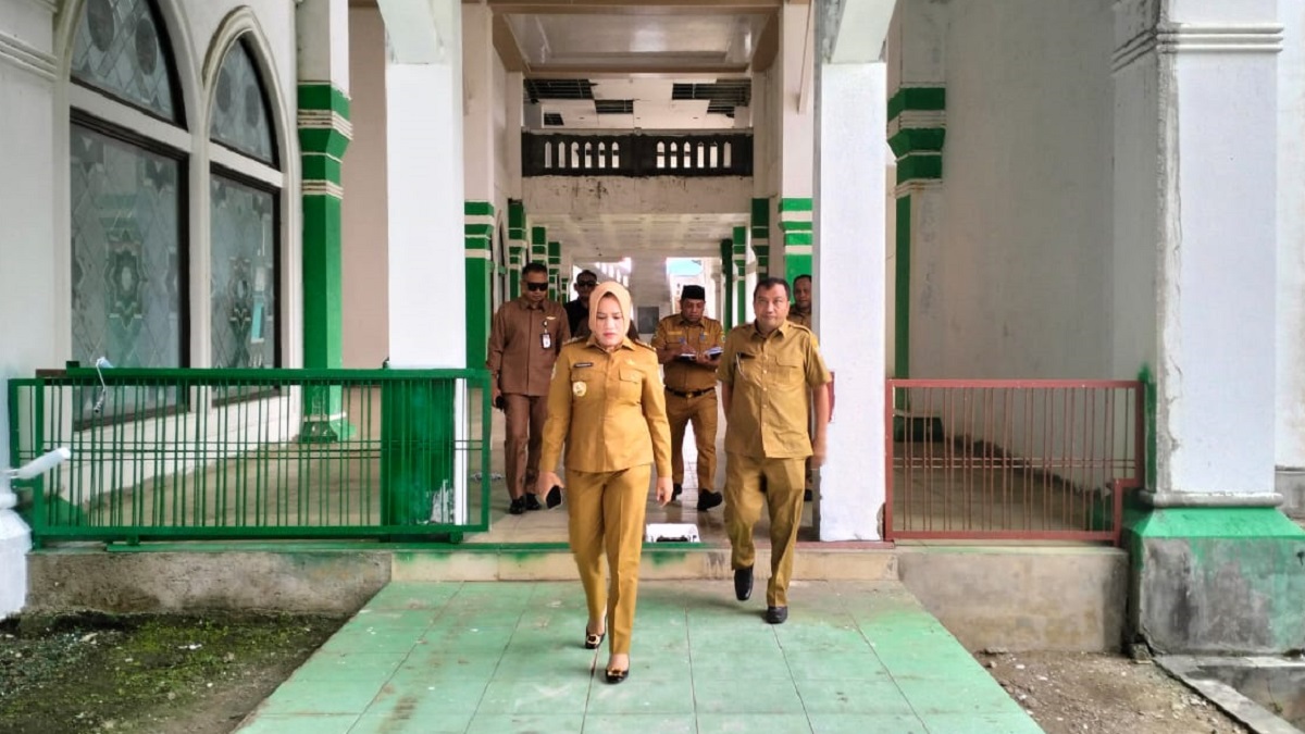 Saat berkunjung, Bupati Sula minta pekerjaan rehabilitasi plafon dan pengecatan masjid raya beserta sejumlah kerusakan lainnya, secepatnya diselesaikan.