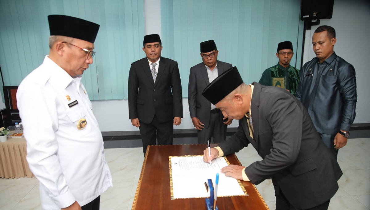 Ternate, Maluku Utara- Wali Kota M. Tauhid Soleman resmi melantik Abdullah Hi. Saleh sebagai Pejabat (Pj) Sekda Kota Ternate di Kantor Walikota, Rabu (11/10/2023).
