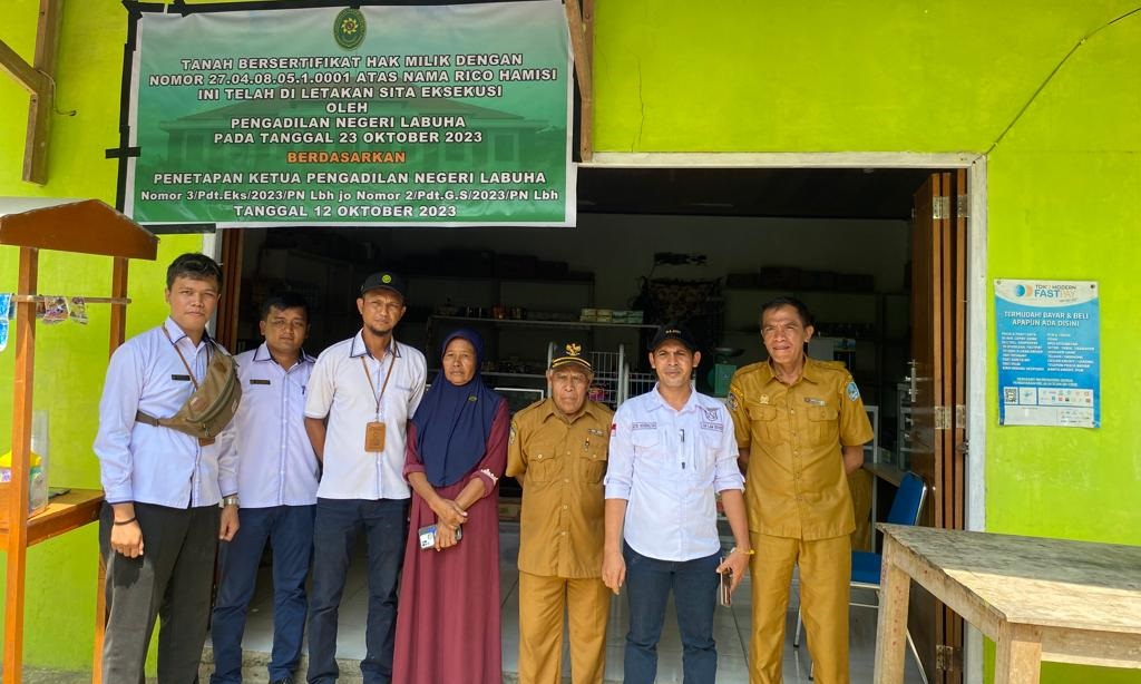 Labuha, Maluku Utara- Pengadilan Negeri (PN) Labuha Halmahera Selatan (Halsel) menyita aset berupa rumah, kios, dan sebidang tanah bersertifikat di Desa Hidayat, Kecamatan Bacan milik Yurni Kamri, seorang anggota polisi yang bertugas di Polsek Bacan, Polres Halmahera Selatan.