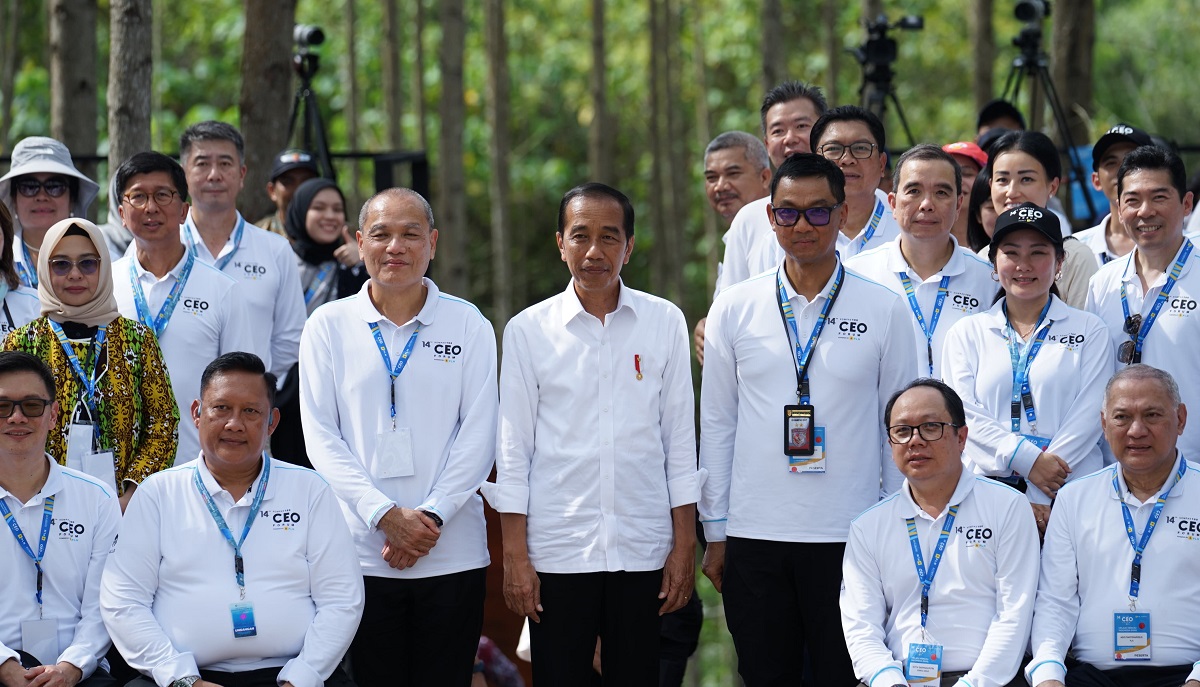 Nusantara, 3 November 2023 – Presiden Joko Widodo bersama Direktur Utama PLN Darmawan Prasodjo dan 99 Chief Executive Officer (CEO) yang memiliki bisnis di Indonesia melakukan kunjungan ke Ibu Kota Nusantara (IKN), Kamis (01/11). Kunjungan tersebut dilakukan untuk melihat pembangunan IKN yang menjadi bagian dari rangkaian Kompas100 CEO Forum 2023.