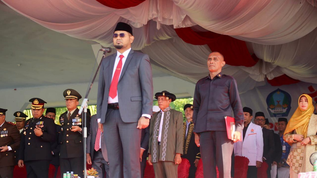 “Sebelum pembacaan amanat sambutan pada upacara ini, saya mengajak kita sekalian untuk dapat mengenang jasa para pahlawan dan utamanya juga mengenang almarhum Bupati Usman Sidik, semoga amal ibadahnya dapat di terima di sisi Allah SWT,” ucapnya.