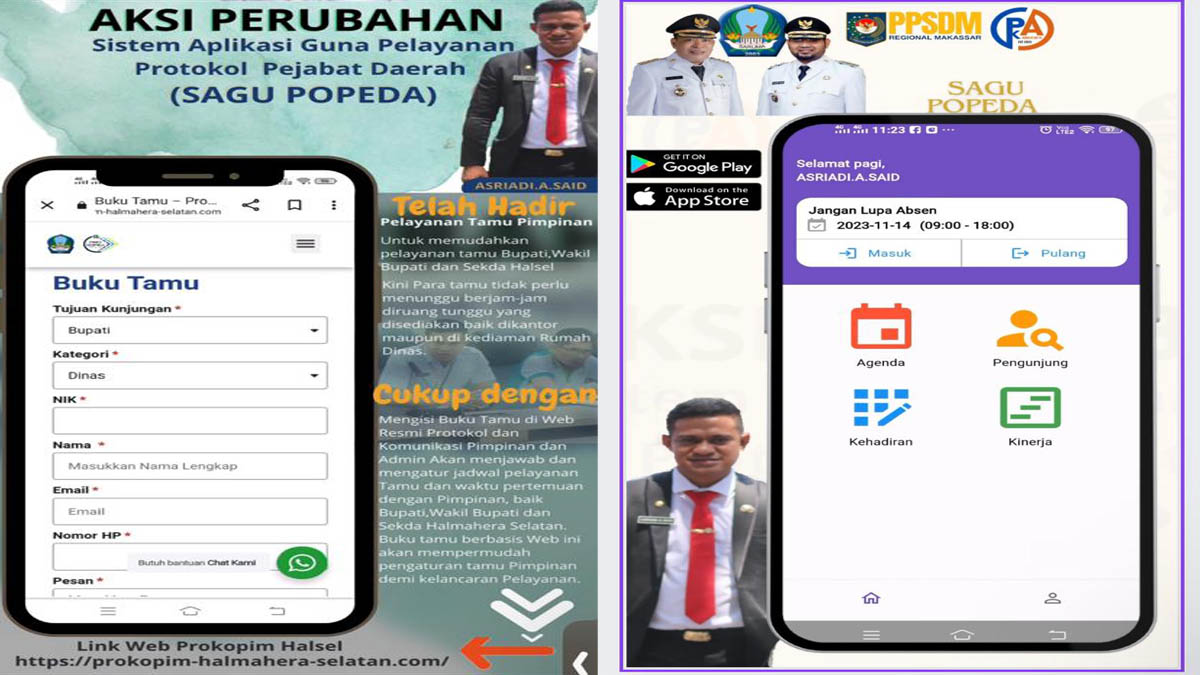 “Sagu Popeda kepanjangannya adalah sistem aplikasi guna pelayanan protokol pejabat daerah, dimana saat ini kami mencoba menerapkan pelayanan Keprotokolan berbasis website dan aplikasi layanan sesuai dengan peraturan Presiden Nomor 95 Tahun 2018 tentang Sistem Pemerintahan Berbasis Elektronik (SPBE), khususnya pelayanan tamu pimpinan dan jadwal agenda pimpinan yang mana lebih dikemas dalam sebuah pelayanan yang efektif efisien” jelasnya.