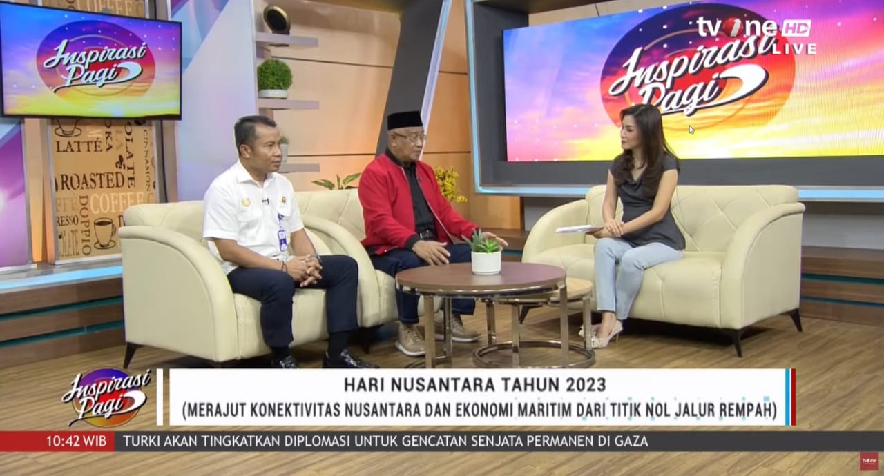 Tidore, Maluku Utara- Hadir sebagai narasumber di live streaming program Talkshow Inspirasi Pagi di TvOne, Kamis (30/11/2023), Walikota Tidore Kepulauan Ali Ibrahim dan Sekjen Perhubungan Darat Amirollah, mempromosikan Hari Nusantara Tahun 2023.