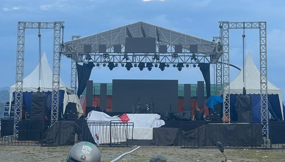 Yudi bilang, persiapan panggung utama sudah 95 persen tinggal finishing. Untuk persiapannya ditargetkan tuntas besok.
