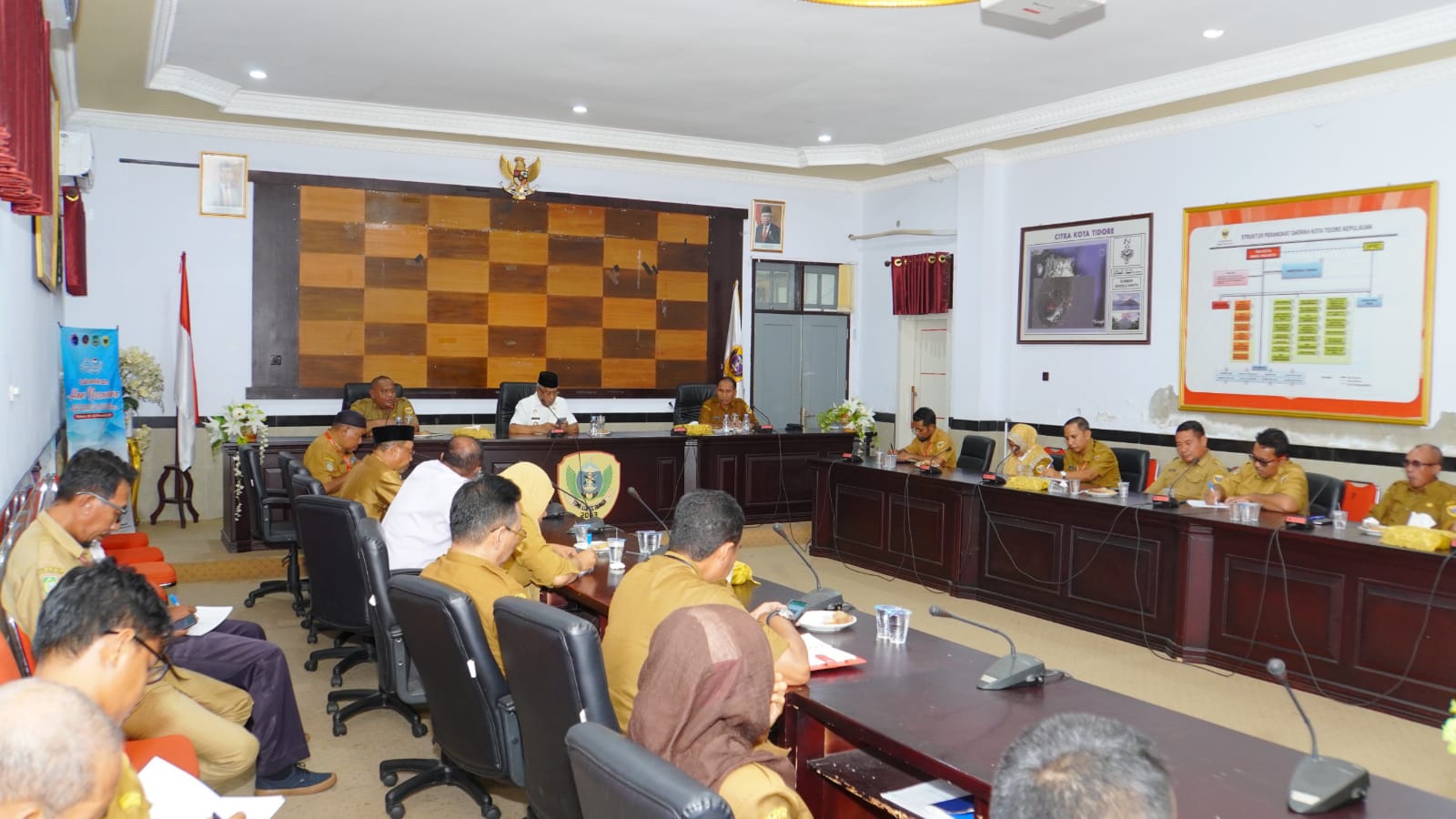 Tidore, Maluku Utara- Pemerintah Kota Tidore Kepulauan menggelar Rapat Koordinasi (Rakor) Pengendalian Inflasi Daerah bersama Menteri Dalam Negeri Republik Indonesia, Muhammad Tito Karnavian secara virtual di ruang rapat Sekda, Kantor Walikota Tidore Kepulauan, Senin (8/1/2024).