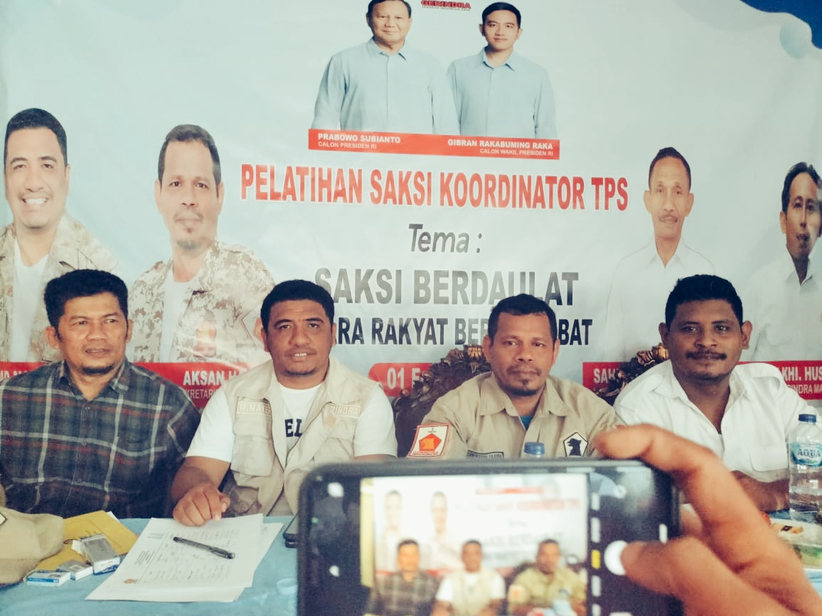 Sanana, Maluku Utara- Dewan Pengurus Cabang Partai Gerakan Indonesia Raya (Gerindra) Kabupaten Kepulauan Sula, Maluku Utara menggelar pelatihan saksi dan koordinator TPS.