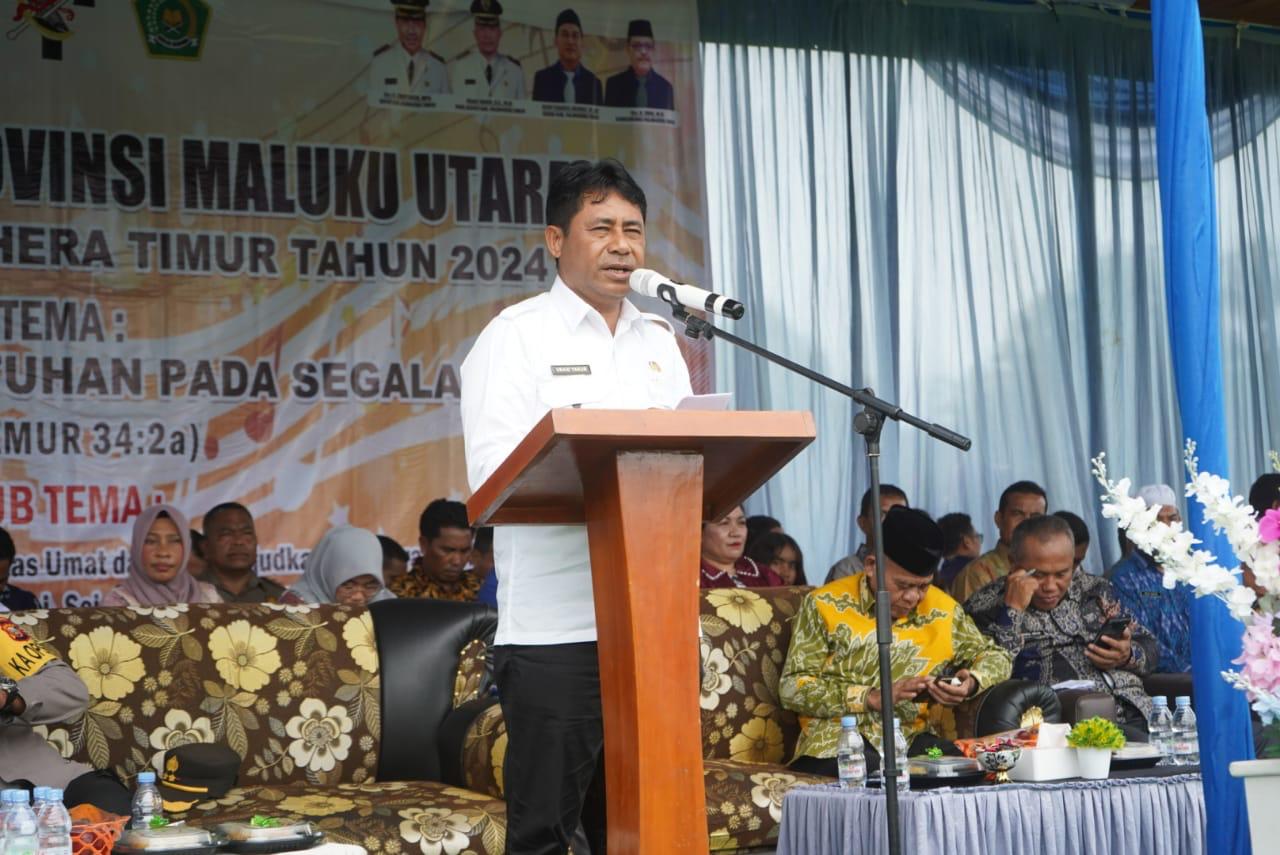 Ubaid Yakub dalam sambutan menyampaikan apresiasi dan terimakasih kepada Pemerintah Provinsi Maluku Utara yang telah menunjuk Halmahera Timur sebagai tuan rumah Pesparawi Ke-IV tahun 2024.