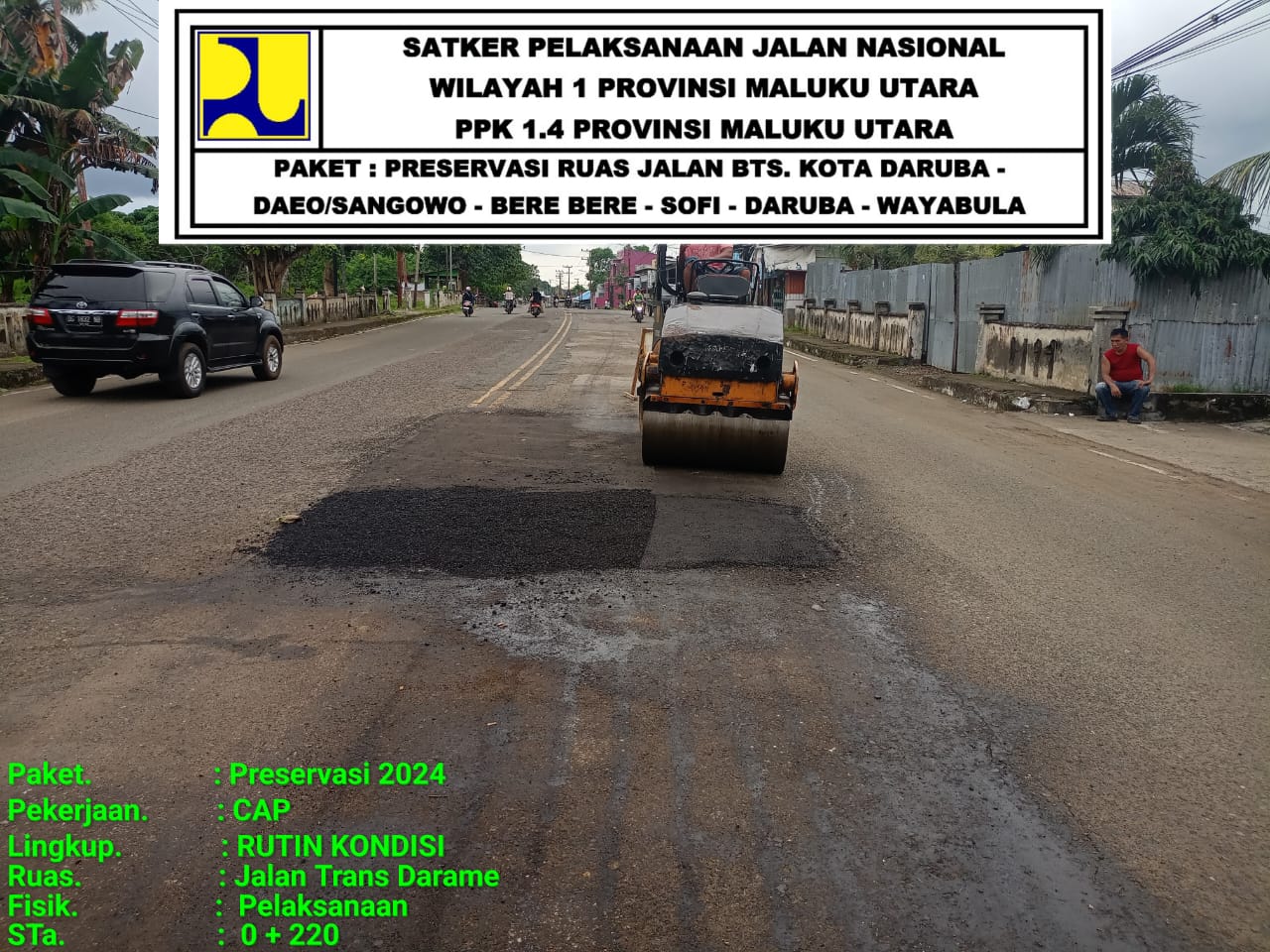 Daruba, Maluku Utara- Pihak rekanan yang menangani proyek jalan di Kabupaten Pulau Morotai, menyatakan telah menambal jalan berlubang di pusat Kota Daruba.