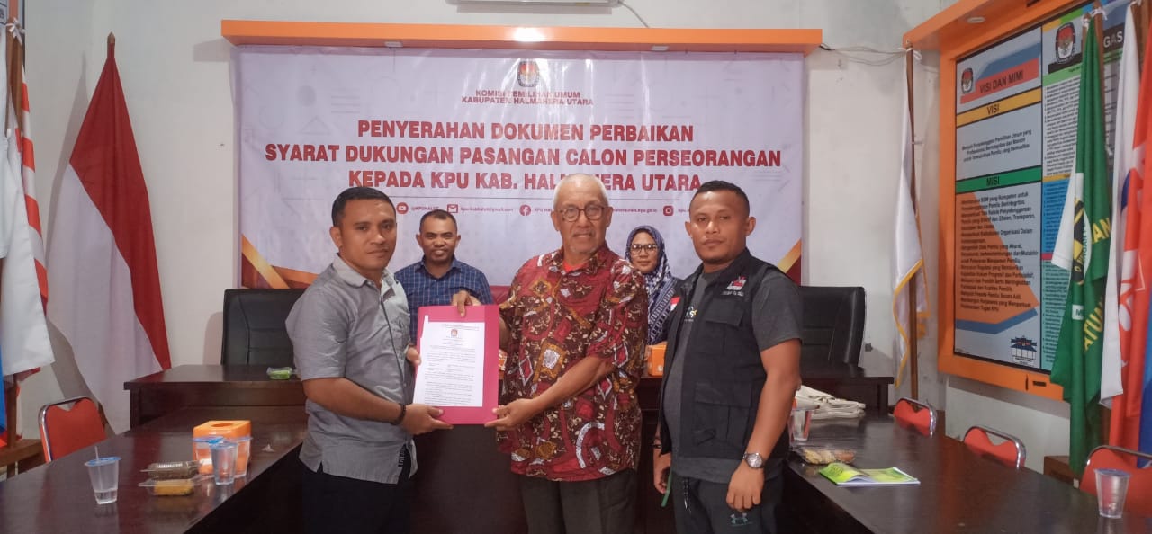 Tobelo, Maluku Utara- Komisi Pemilihan Umum (KPU) Halmahera Utara (Halut) akhirnya menerima putusan Bawaslu untuk melanjutkan tahapan verifikasi berkas bakal calon perseorangan/independen Abd. Rahman Sidi Umar dan Oxaberius Kojoba.