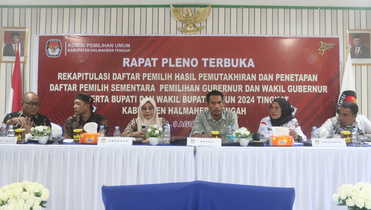 Hal itu ditetapkan dalam rapat pleno rekapitulasi dan daftar pemilih sementara (DPS) Pemilihan Kepala Daerah (Pilkada) serentak tahun 2024, yang berlangsung di Aula Mardelia,Desa Nurweda.Kecamatan Weda, Jumat (9/8/2024) kemarin.