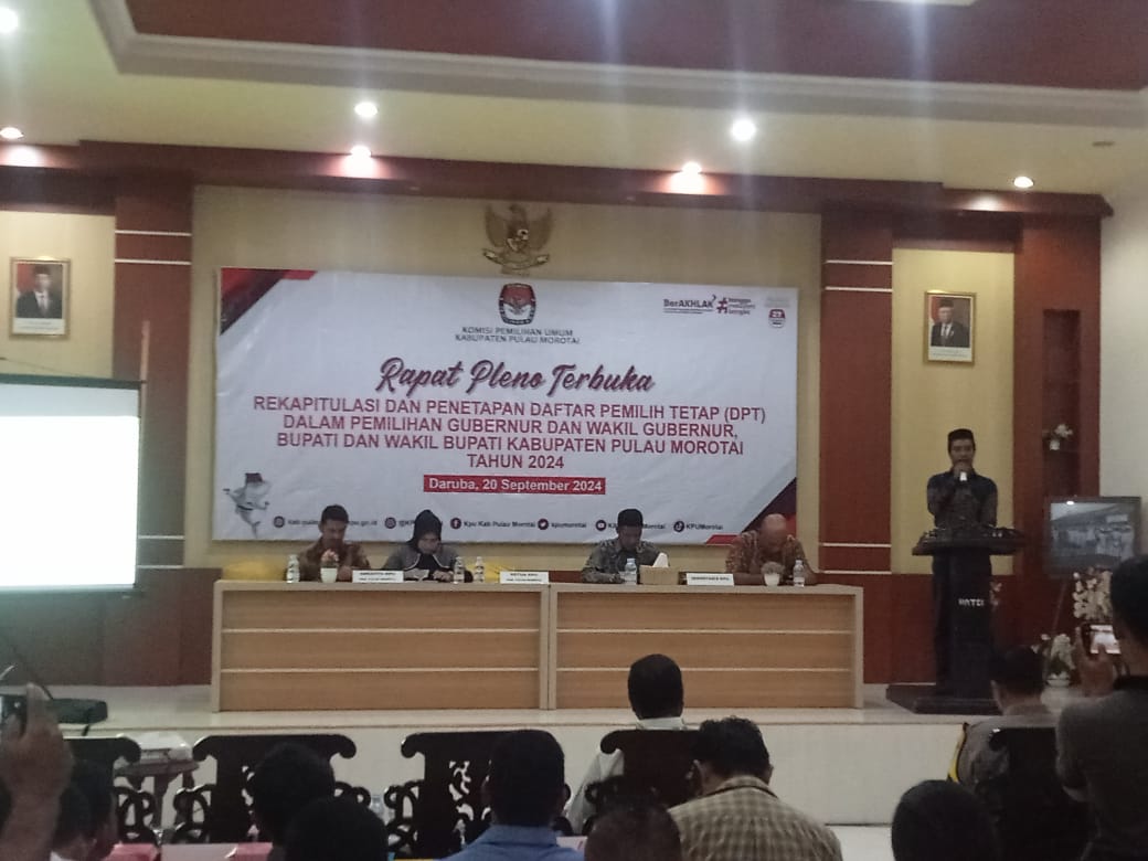 Daruba, Maluku Utara – Komisi Pemilihan Umum (KPU) Kabupaten Pulau Morotai, menetapkan Daftar Pemilih Tetap (DPT) pada Pilkada serentak tahun 2024 di Pulau Morotai sebanyak 54.629 DPT.