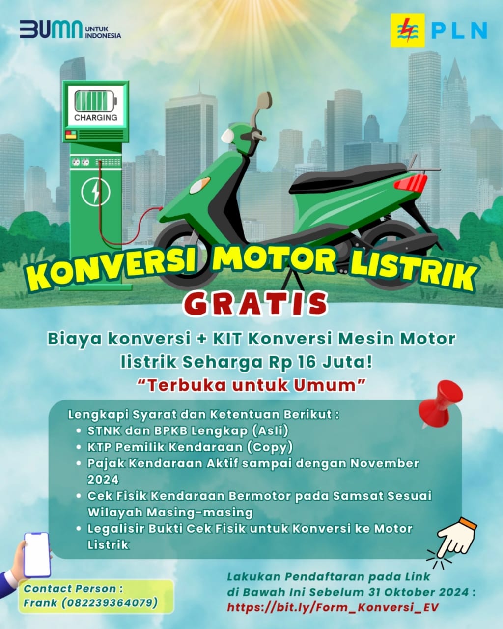 Awat menyampaikan, pengguna motor perlu melakukan pendaftaran terlebih dahulu melalui link https://bit.ly/Form_Konversi_EV sebelum 31 Oktober 2024.