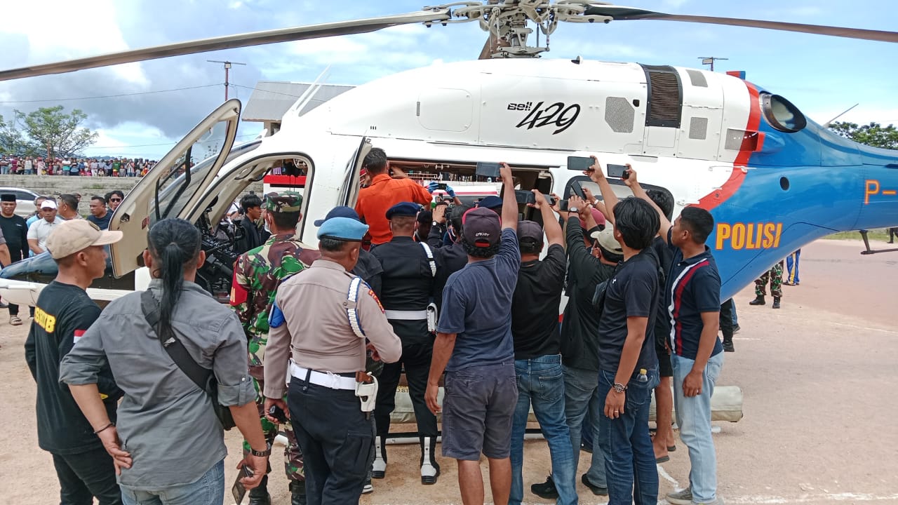 Dari amatan wartawan, tampak kerumunan warga dan pendukung Benny Laos terlihat memadati area Helipad untuk mengantarkan jenazah almarhum.