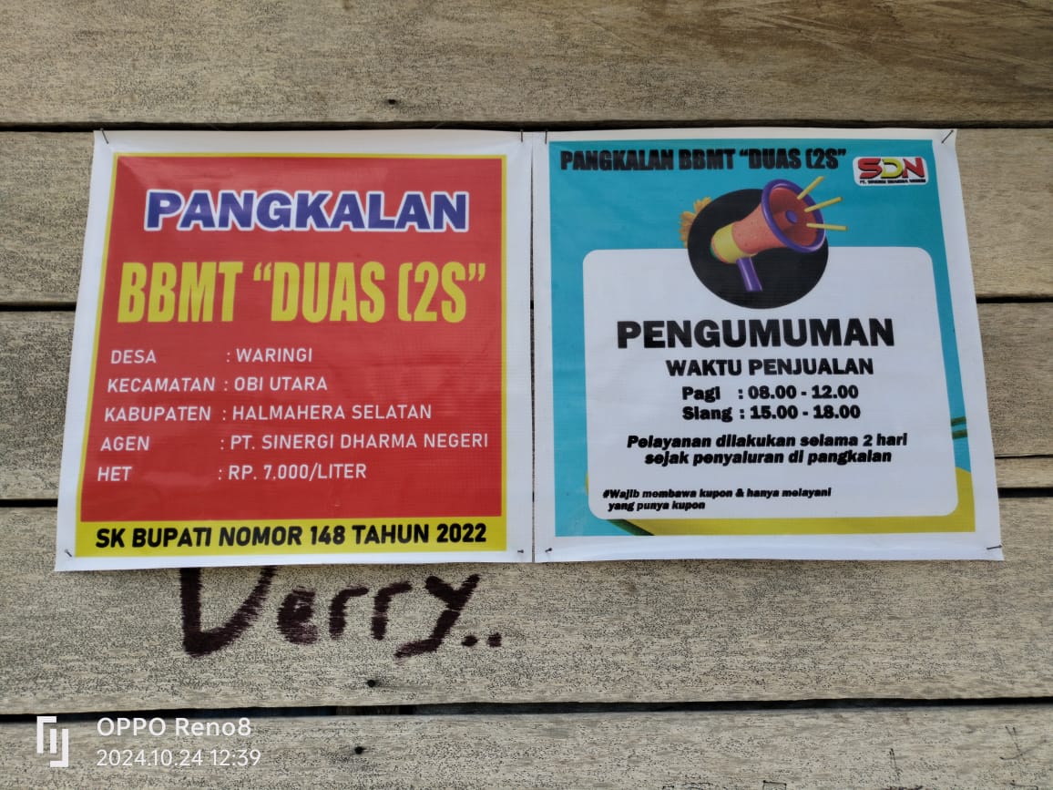 Labuha, Maluku Utara – Warga Desa Waringi, Kecamatan Obi Utara, Kabupaten Halmahera Selatan, meminta Pangkalan Bahan Bakar Minyak (BBM) jenis minyak tanah (Mitan) milik ST segera ditutup.