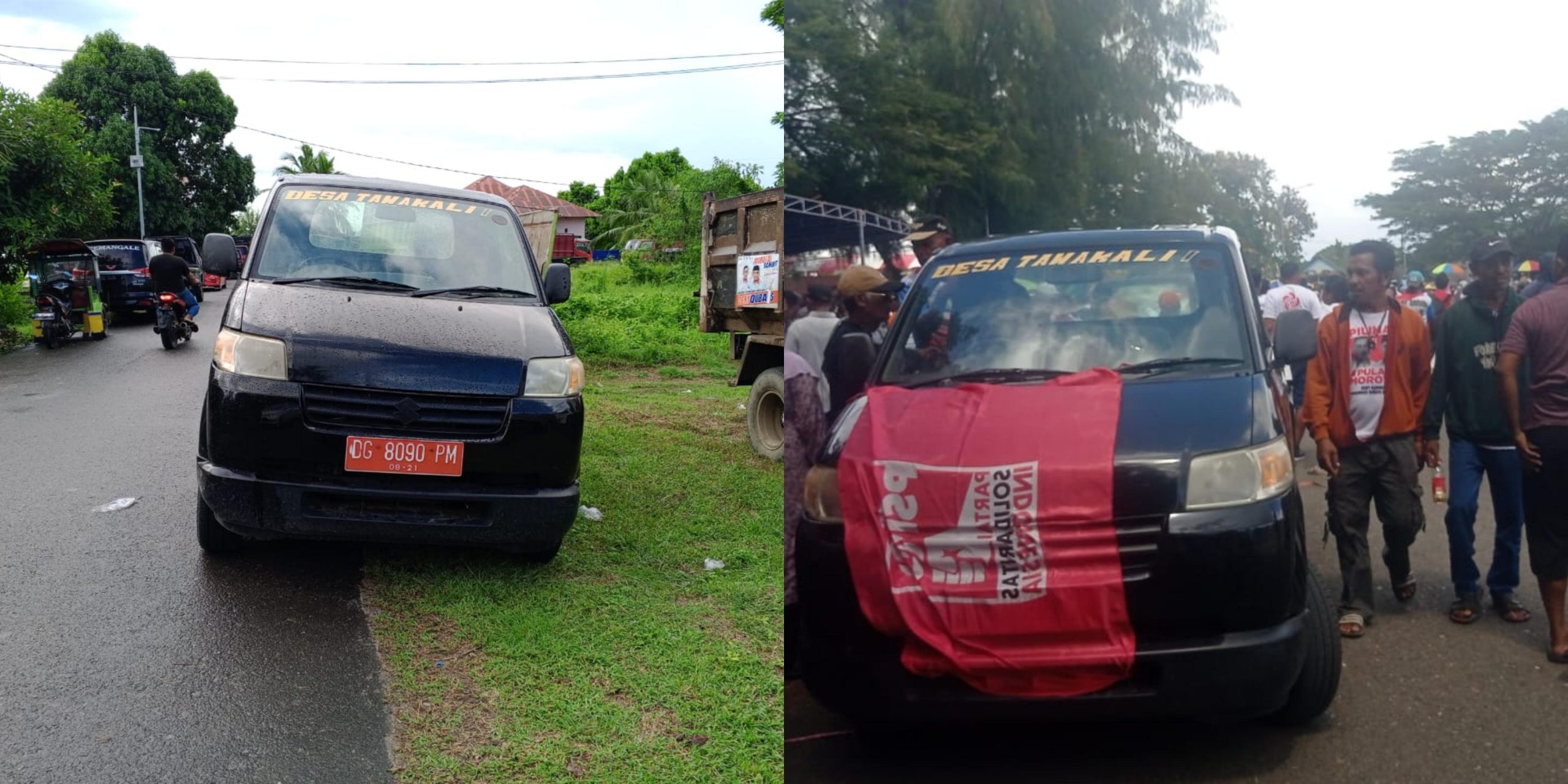 Dalam pantauan langsung di sekitar lokasi kampanye akbar di Desa Juanga Kecamatan Morotai Selatan, terlihat jelas sejumlah mobil dinas desa dengan nomor polisi DG 8090 PM beriringan dengan mobil rombongan massa pendukung Deny-Qubais hingga tiba di titik kampanye akbar.