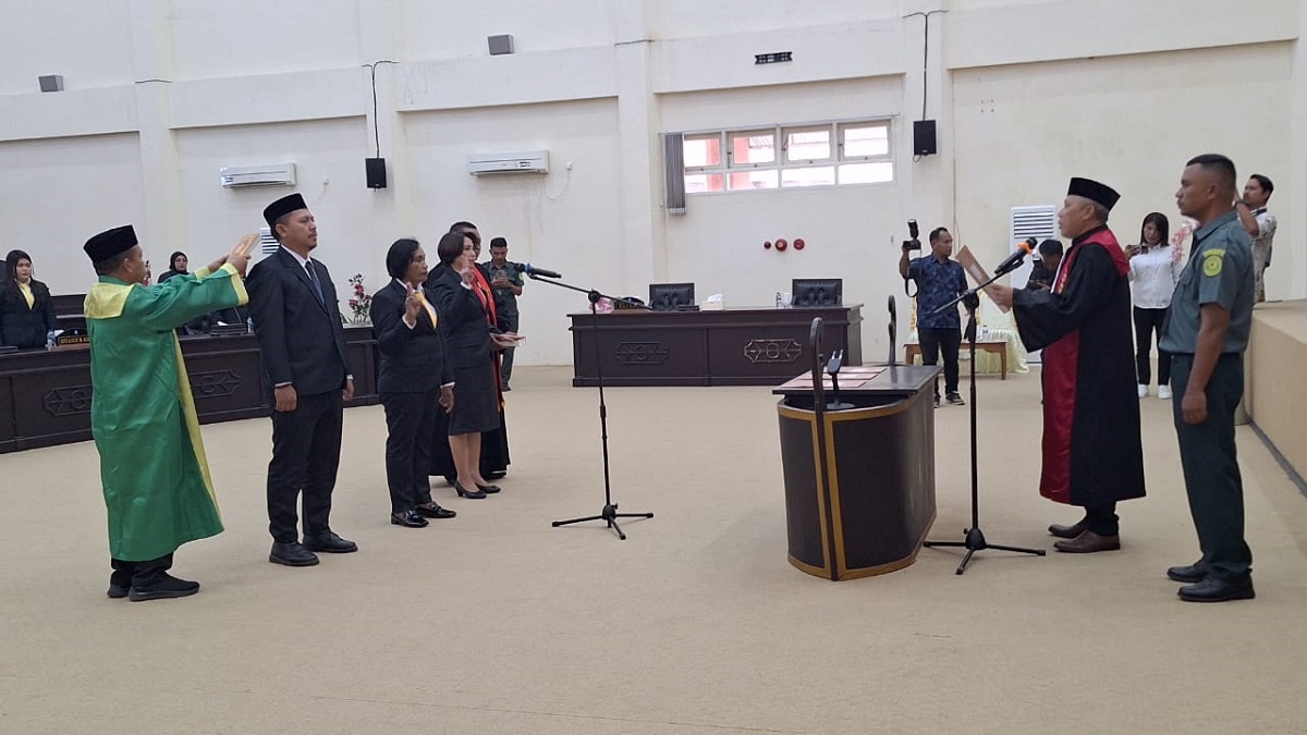 Adapun tiga unsur pimpinan DPRD definitif ini diambil sumpah oleh kepala Pengadilan Negeri (PN) Tobelo R. Muhammad Syakrani.