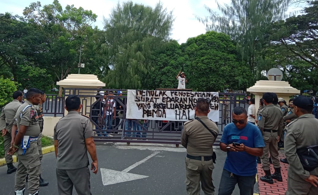 Aksi unjuk rasa ini menolak mengenai dengan surat edaran Bupati Nomor 503/131 tentang Pembatasan Penjualan Buah Kelapa Keluar Wilayah Halmahera Utara.