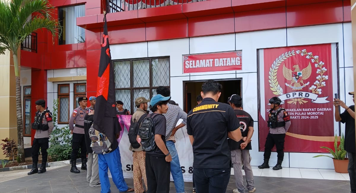 Daruba, Maluku Utara – Sejumlah mahasiswa yang tergabung dalam Solidaritas Aksi Mahasiswa Untuk Rakyat Indonesia (Samurai) Distrik Unipas, Maluku Utara menggelar demonstrasi di Kantor DPRD Kabupaten Pulau Morotai pada Senin (17/2/2025).
