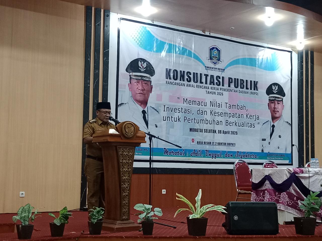 Daruba, Maluku Utara – Pemerintah Daerah (Pemda) Kabupaten Pulau Morotai, menggelar Forum Konsultasi Publik Rencana Awal Penyusunan Dokumen Rencana Kerja Pembangunan Daerah (RKPD) 2026 di aula Kantor Bupati pada Selasa (08/04/ 2025).