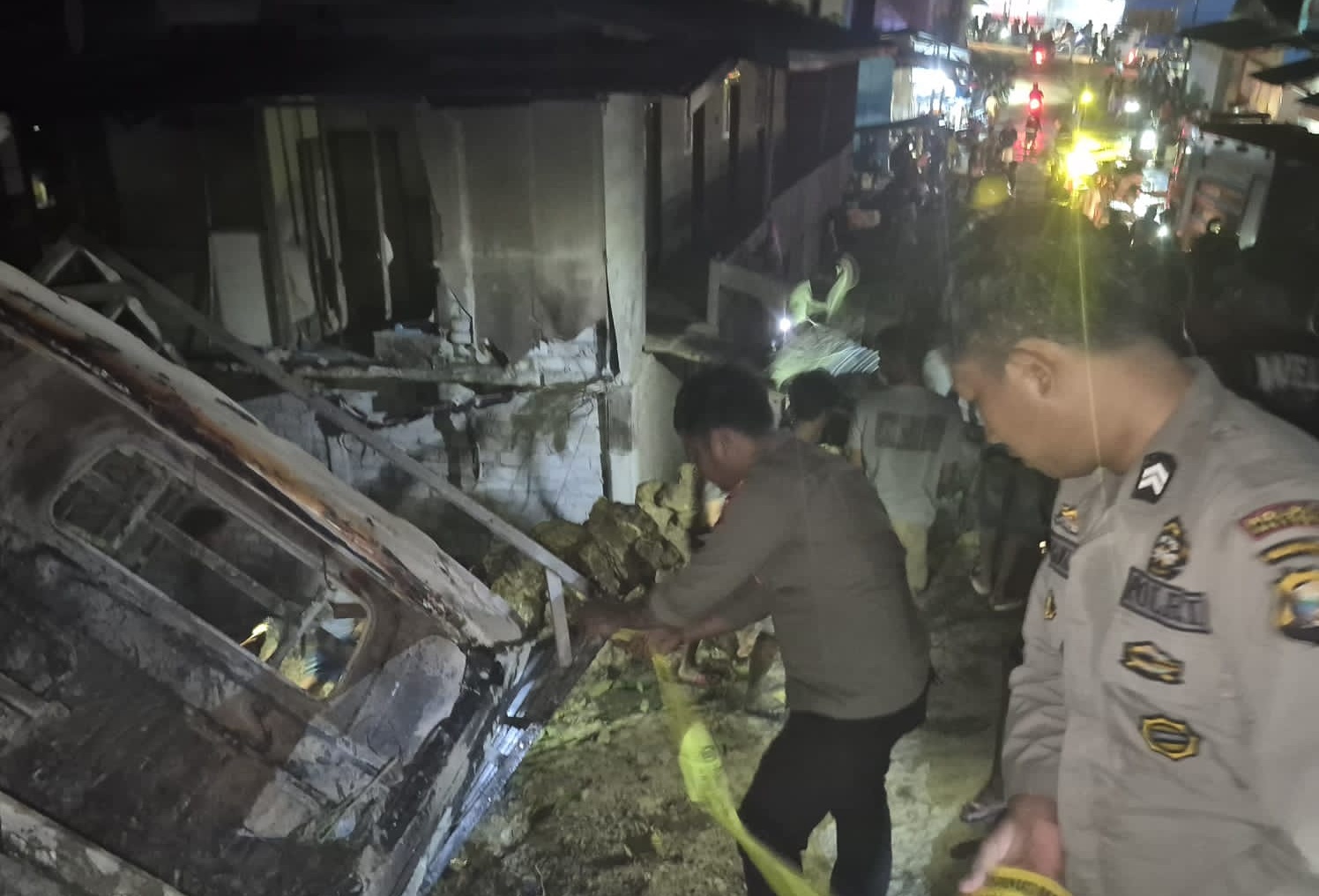 Weda, Maluku Utara – Suasana malam di Desa Waibulan, Kecamatan Weda Tengah, Kabupaten Halmahera Tengah, mendadak mencekam pada Sabtu (26/4) sekitar pukul 20.30 WIT, setelah kebakaran hebat melahap belasan kamar kos dan satu unit rumah warga. Api diduga berasal dari kecelakaan sebuah mobil pick-up bermuatan bahan bakar minyak (BBM) jenis Pertalite di tanjakan dua Jari.