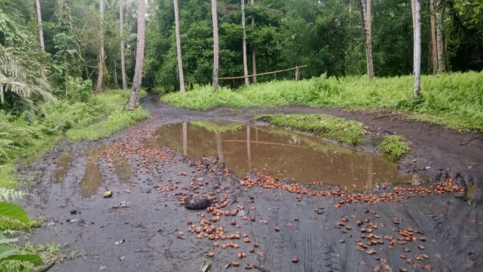 Galela, Maluku Utara – Jalan Tani yang berada di Desa Togawa, Kecamatan Galela Selatan, mengalami kerusakan parah akibat sering dilalui oleh truk-truk dari PT. Nico, salah satu perusahaan yang bergerak di bidang produk kelapa khususnya minyak kelapa murni dan turunan lainnya.