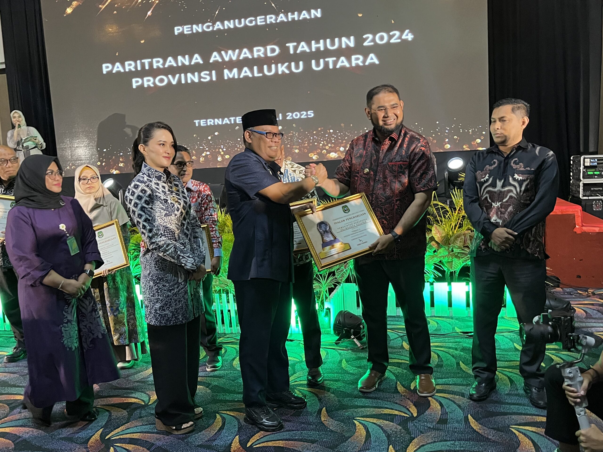 Di atas Halsel, ada nama Kota Ternate sebagai terbaik pertama penerima penghargaan Paritrana Award tersebut. Dan penyerahan penghargaan ini disaksikan langsung oleh Gubernur Maluku Utara Sherly Tjoanda.