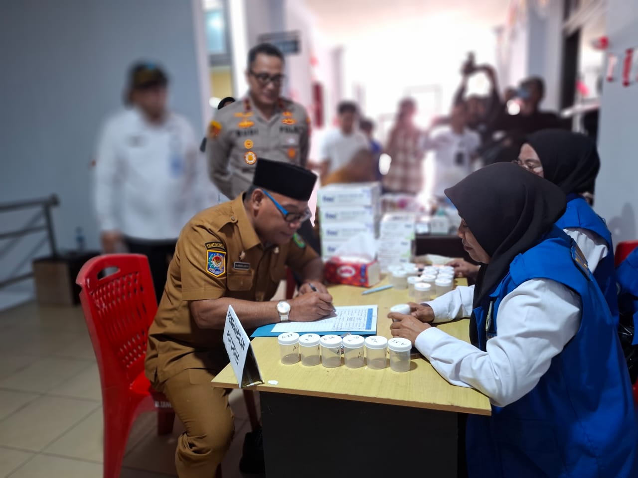 Sofifi, Maluku Utara – Hari Senin, 14 Juli 2025, pejabat eselon II dan III di lingkungan Pemprov Maluku Utara melaksanakan tes urin yang diselenggarakan oleh Badan Narkotika Nasional (BNN) di lantai empat Kantor Gubernur. Kegiatan ini dipimpin oleh Sekda Maluku Utara, Samsudin A. Kadir, bersama dengan kepala BNN Maluku Utara Brigjen Pol. Budi Mulyanto.