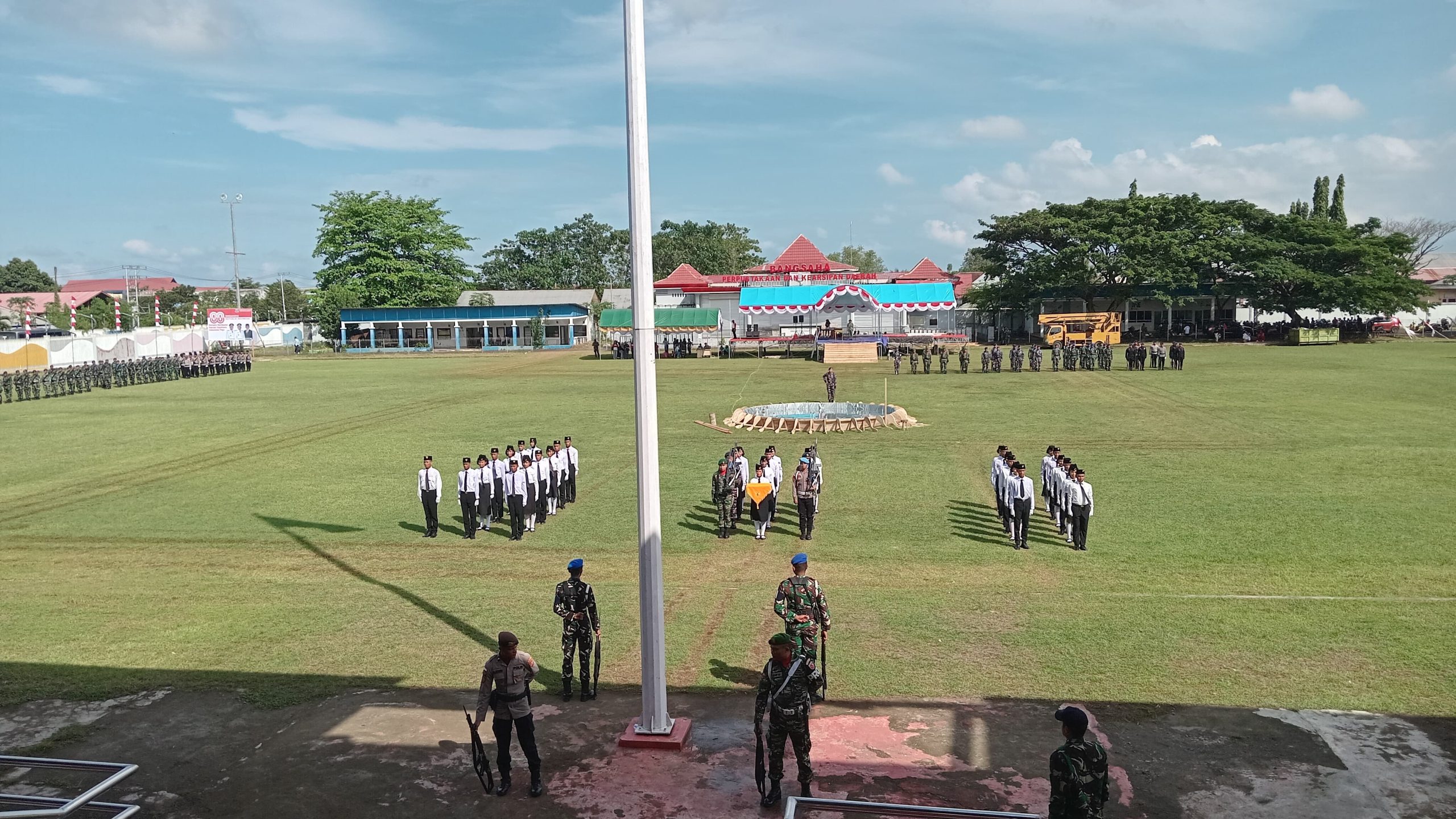 Gladi bersih untuk menyambut peringatan Hari Ulang Tahun ke-80 Kemerdekaan Republik Indonesia ini digelar di Lapangan Bangsaha MTQ, Desa Darame, Kecamatan Morotai Selatan.