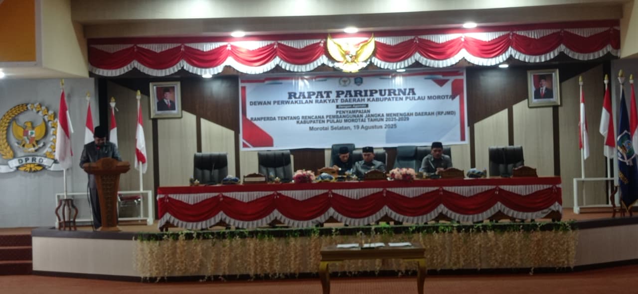 Daruba, Maluku Utara – Pemerintah Kabupaten Pulau Morotai secara resmi menyerahkan Rancangan Peraturan Daerah (Ranperda) tentang Rencana Pembangunan Jangka Menengah Daerah (RPJMD) 2025–2029 kepada DPRD, Selasa (19/8/2025).