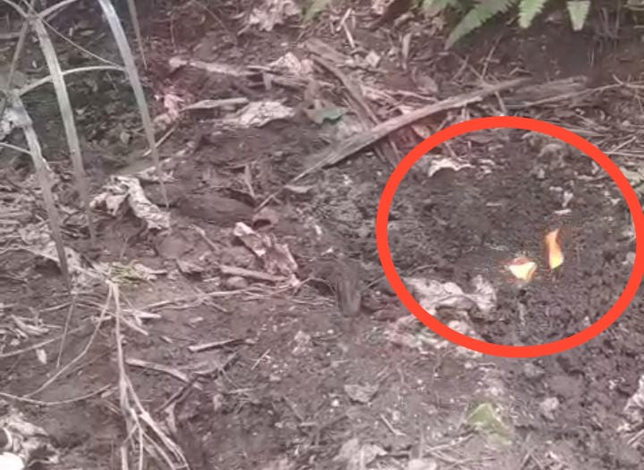 Dalam video tersebut, warga terlihat mencoba memantik api dengan ranting ke arah semburan, dan hasilnya muncul percikan api dari lubang tersebut, mengindikasikan adanya kandungan gas yang mudah terbakar.