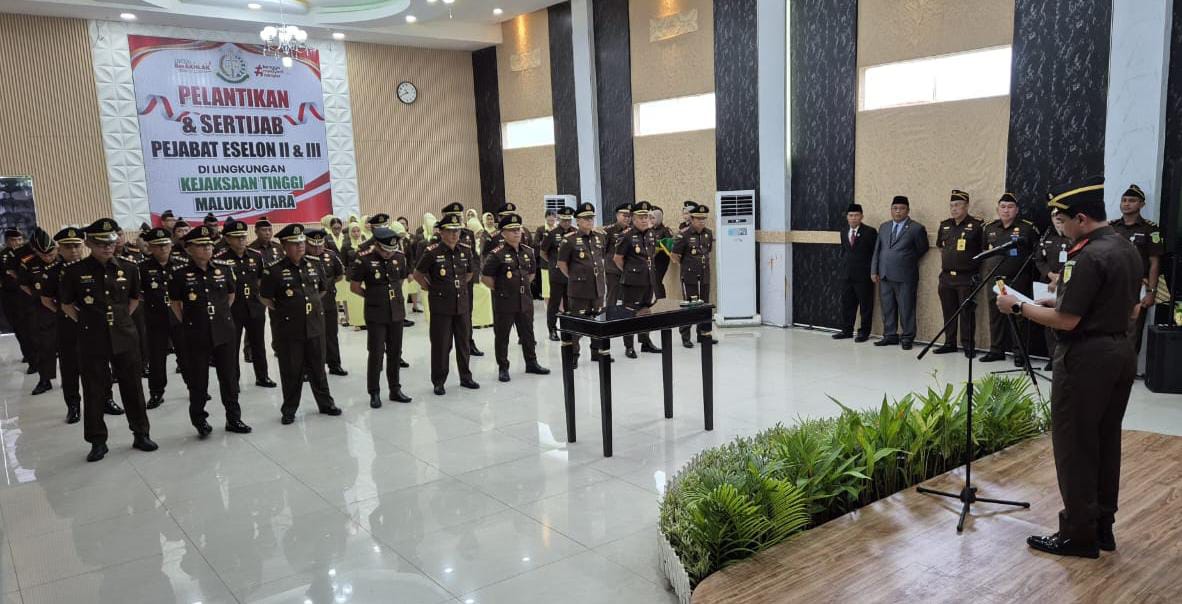 Pelantikan dan pengambilan sumpah jabatan ini berlangsung di aula Falalamo Kejati Maluku Utara dan dihadiri oleh jajaran pejabat struktural serta tamu undangan, Senin (03/11/2025).