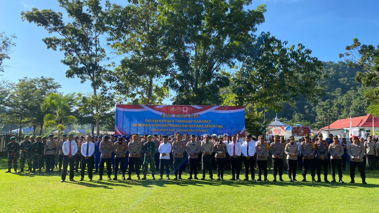 Apel tersebut diikuti oleh berbagai unsur penting yang memiliki peran strategis dalam penanggulangan bencana, antara lain personel Polres Halteng, Polairud, Brimob, BPBD Halteng, Unit Pemadam Kebakaran, Dinas Perhubungan, Satpol PP, unsur TNI dari Kodim 1512/Weda, serta tim siaga dari berbagai instansi lainnya.
