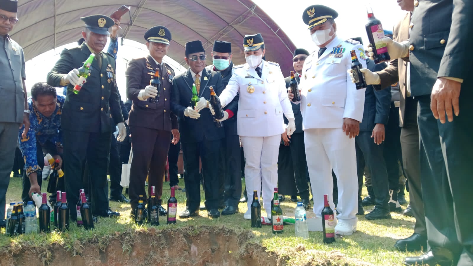 Agenda kemudian berlanjut ke lokasi pemusnahan barang sitaan. Di sana, botol-botol minuman keras hasil operasi Polres Pulau Taliabu sejak menjelang Lebaran dimusnahkan. Bersama itu, sejumlah barang kedaluwarsa hasil sitaan Dinas Perindustrian, Perdagangan, dan Koperasi turut dihancurkan.