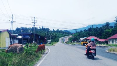 Perbup Tak Bertaji, Sapi di Halsel Bebas Masuk Jalan Raya: Merumput Dekat Kediaman Bupati-Wabup Pula Lagi